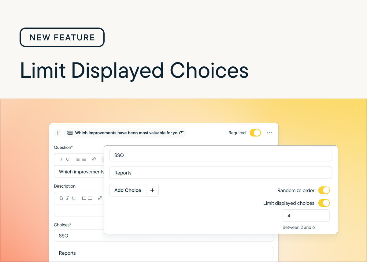Availability: Attribute Piping is available for customers on the Enterprise plan across In-Product Surveys, Long-Form Surveys, and Feedback studies.