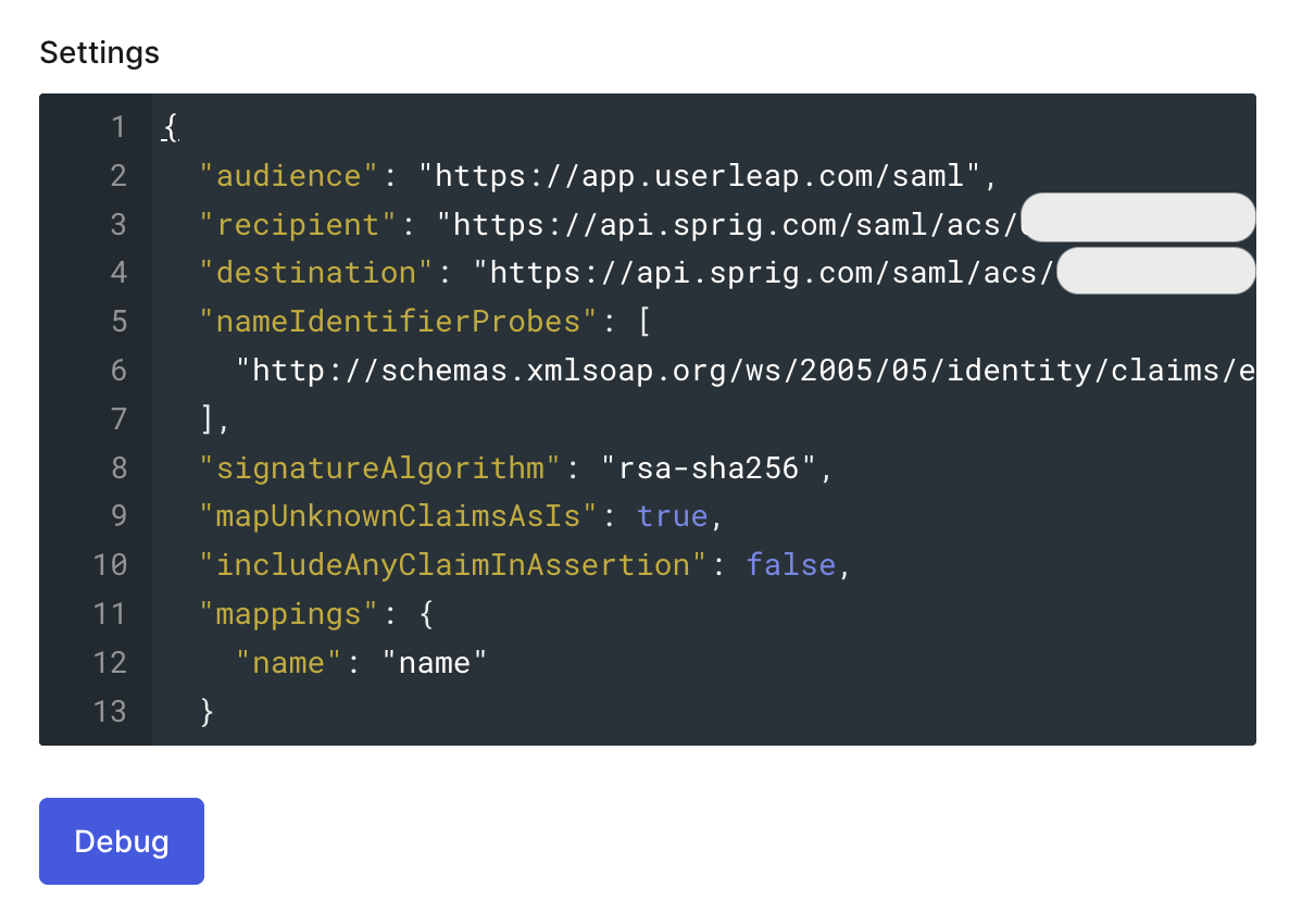 - Copy the Issuer value and paste it into the Issuer URL field in the Sprig dashboard.