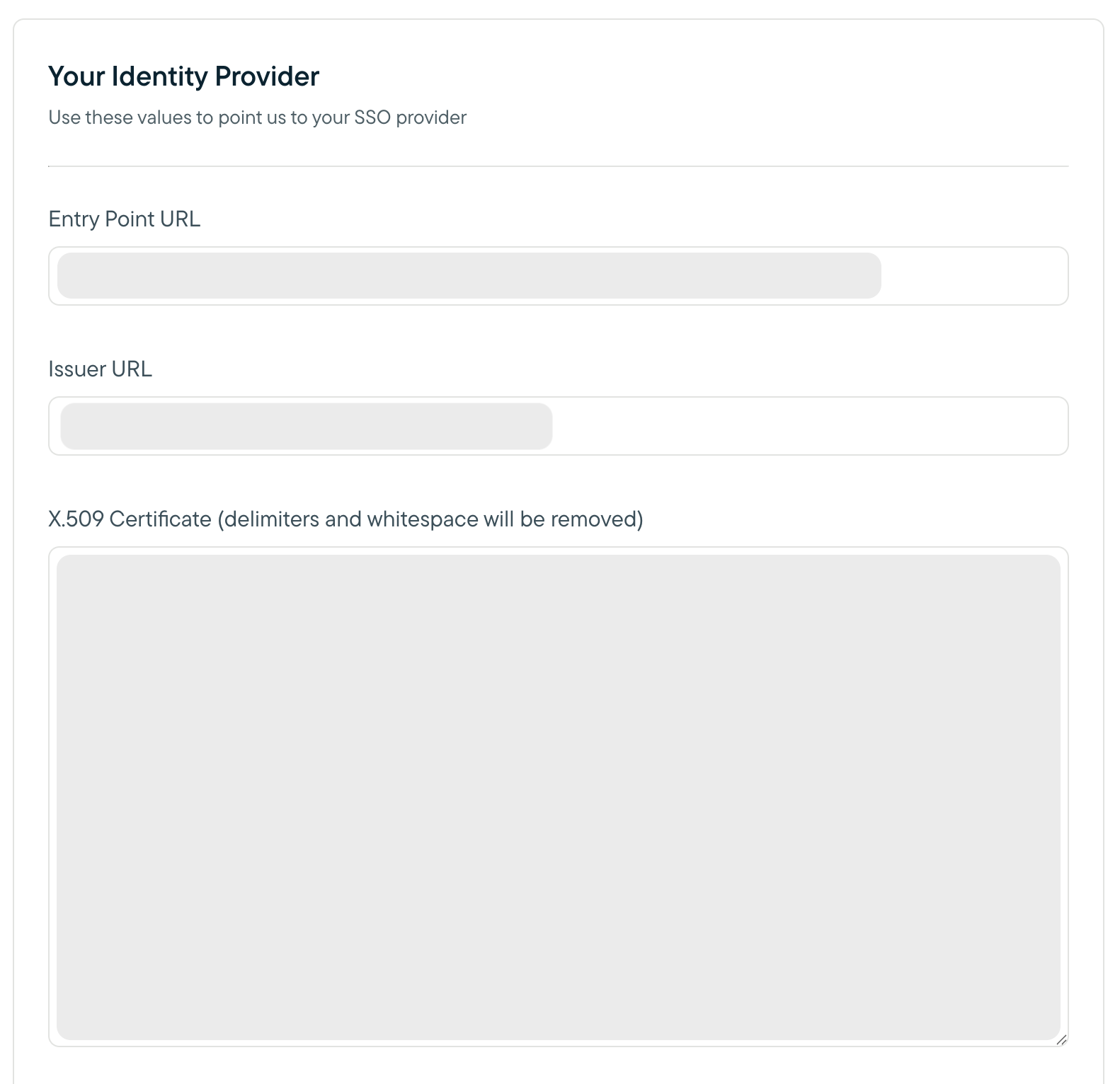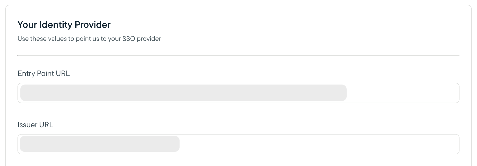 - Copy the Identity Provider Login URL value and paste it into the Entry Point URL field in the Sprig dashboard.