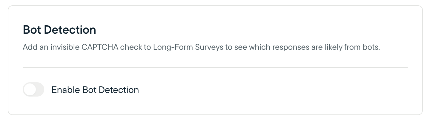 When disabling Bot Detection, it may will take a few minutes for the disclaimer to disappear from the respondent view of the Long-Form Survey.