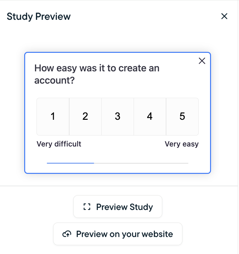 - You can preview the survey behavior on your website (using the URL you just tested) by selecting "Preview on your website" when the study is in draft mode or launched and in progress.