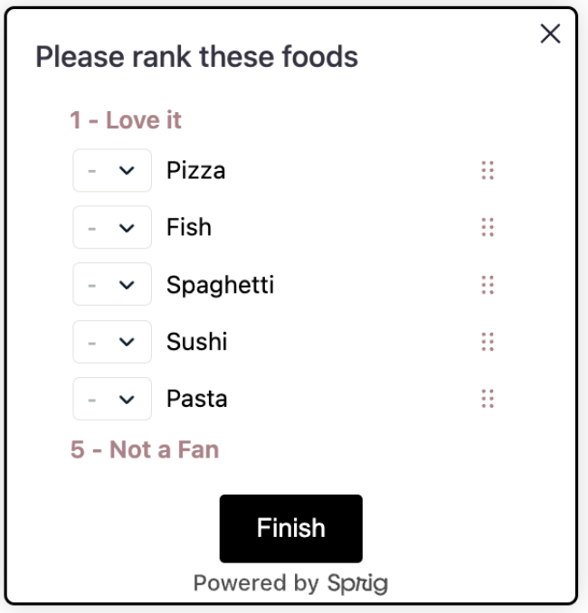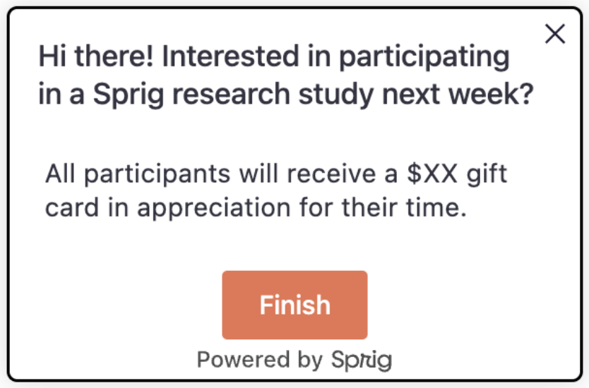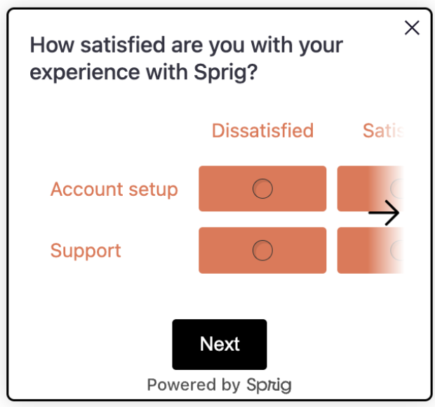 You can add and override the CSS applied to Sprig surveys to completely re-work its appearance to match your branding guidelines and requirements.